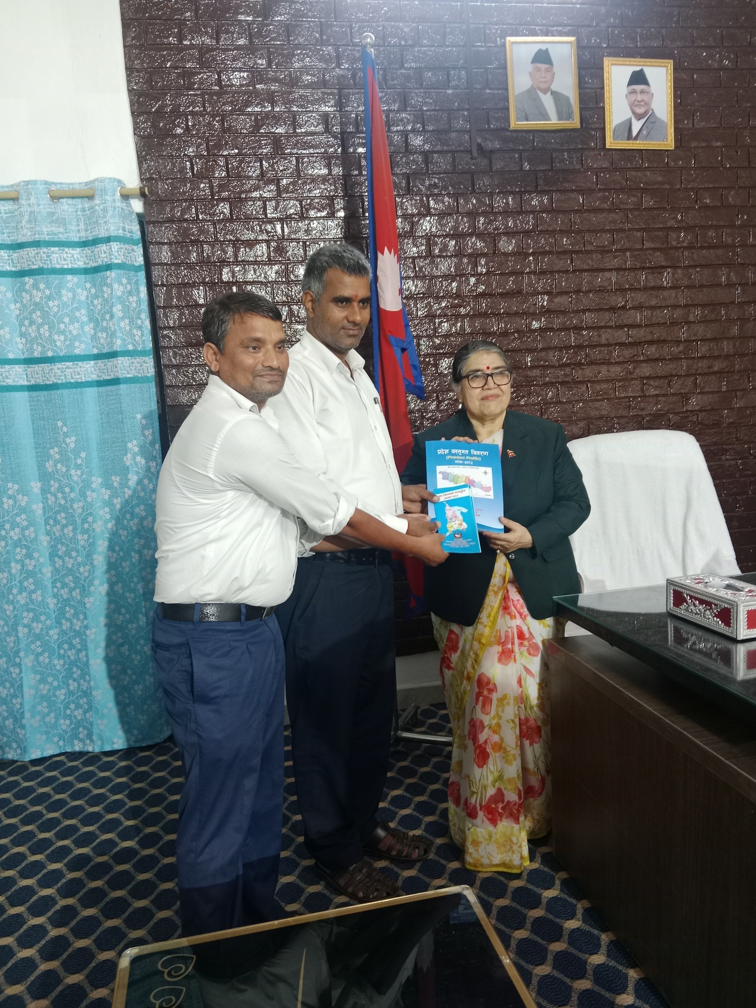 प्रदेश प्रमुख माननीय सुमित्रा सुवेदी भण्डारीज्यूलाई किताब हस्तान्तर तथा प्रदेश प्रमुखसँग छलफल